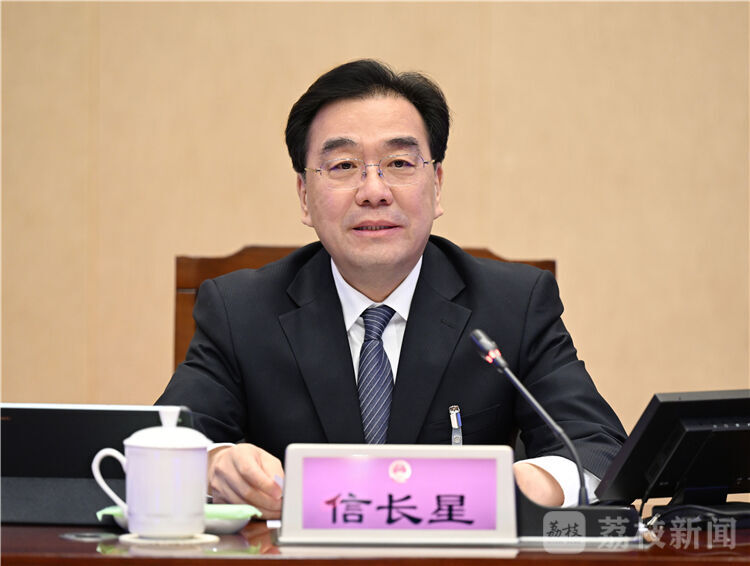 在本次会议任命的有关同志宪法宣誓后,信长星指出,这是严肃的法定仪式,也是庄严的履职承诺。希望大家牢记誓言,忠于宪法,忠于祖国,忠于人民,坚定拥护“两个确立”、坚决做到“两个维护”,自觉践行以人民为中心的发展思想,严格按照法定权限和程序履职尽责,敢为善为、真抓实干,为推动高质量发展走在前列、谱写“强富美高”新江苏现代化建设新篇章作出新贡献。