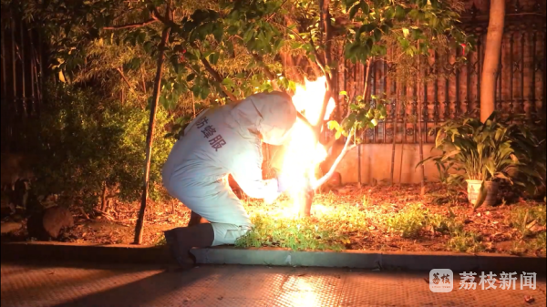 3月28日16时,泰州消防指挥中心接到报警称:高港口岸街道城南村有马蜂窝,来往市民非常害怕,随后消防救援人员立即着防蜂服,赶到现场用杀虫剂喷火灭马蜂窝。经过约5分钟左右的处置,马蜂窝被成功清理掉,消防救援人员再次进行火烧处理,彻底消除安全隐患。