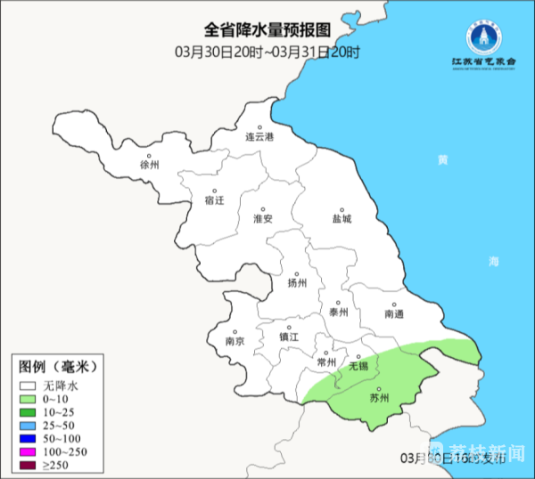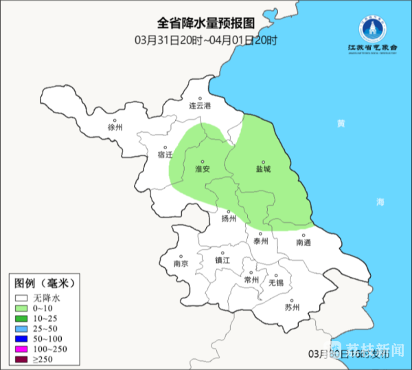 3月31日20时至4月01日20时,全省多云到阴,其中沿江以北部分地区有时有小雨。