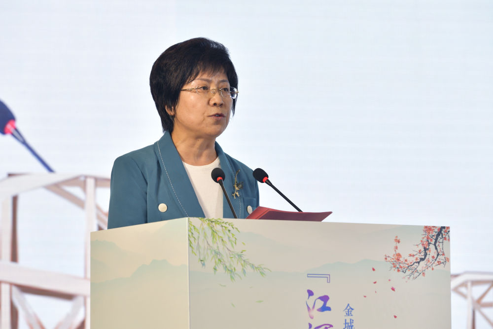 3月31日,兰州市委常委、宣传部部长郑钰在金城兰州遇见金陵南京城际文化交流活动上致辞。新华社记者 范培珅 摄