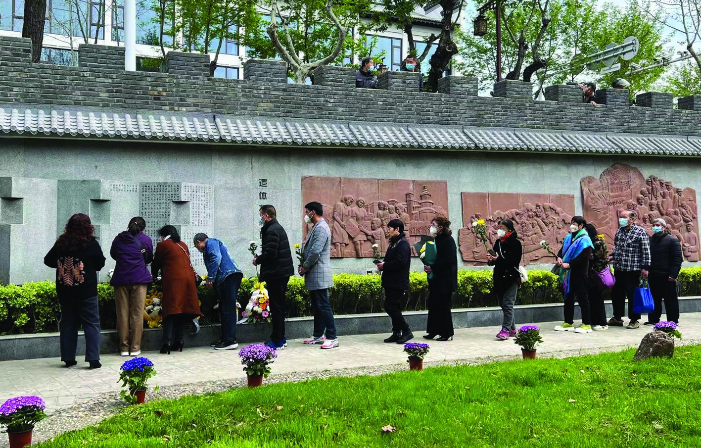 全体人员瞻仰纪念碑并献花。 王诗韵 摄