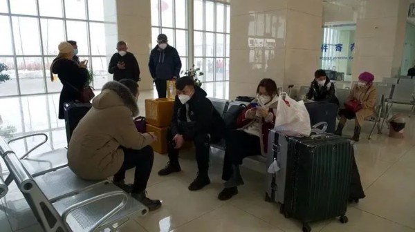 (2月7日,旅客正在有序排队,等待发车。冯海森 摄)