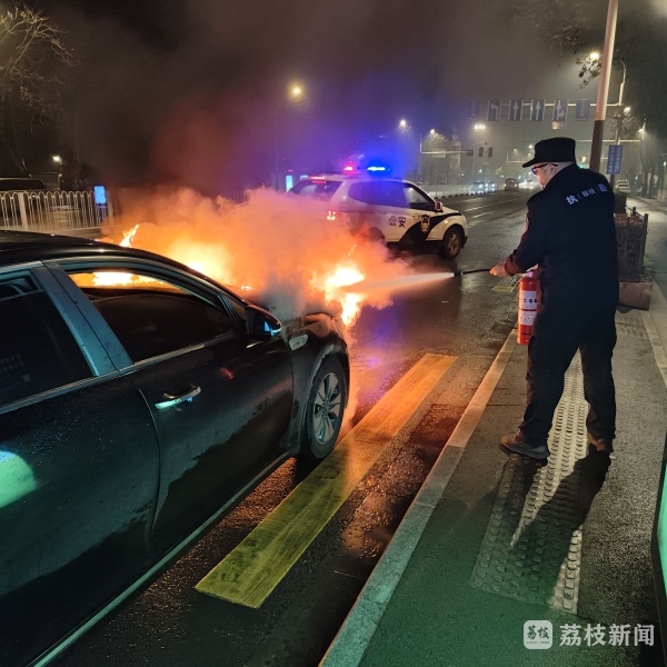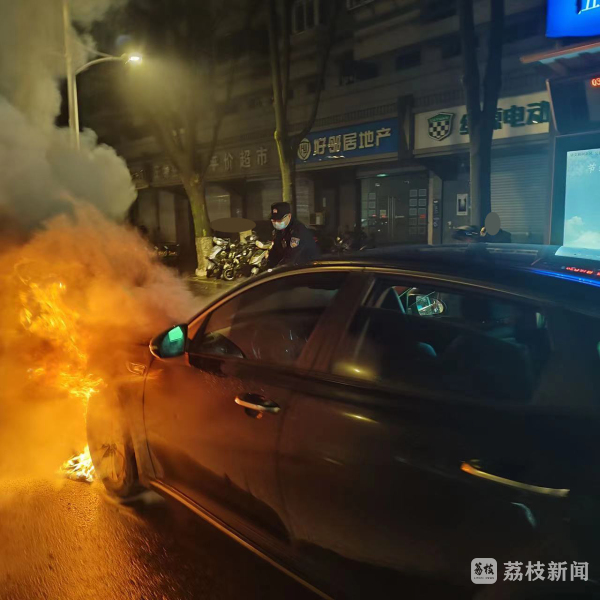 3月26日晚上9时多,南京市公安局鼓楼分局上元门警务站民警王胜在巡逻中,发现五佰村路一辆汽车引擎盖位置着火燃烧。现场火势凶猛,由于旁边就是公交站台,有不少市民在此等待公交,情况十分危险。民警立即展开了救援。昨天(3月31日),已经初步查明起火原因,系车辆电气线路故障引起。