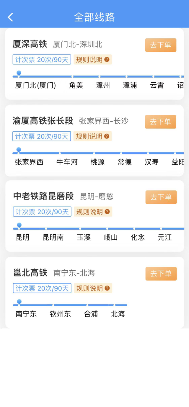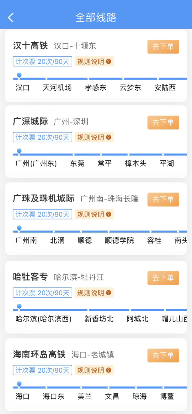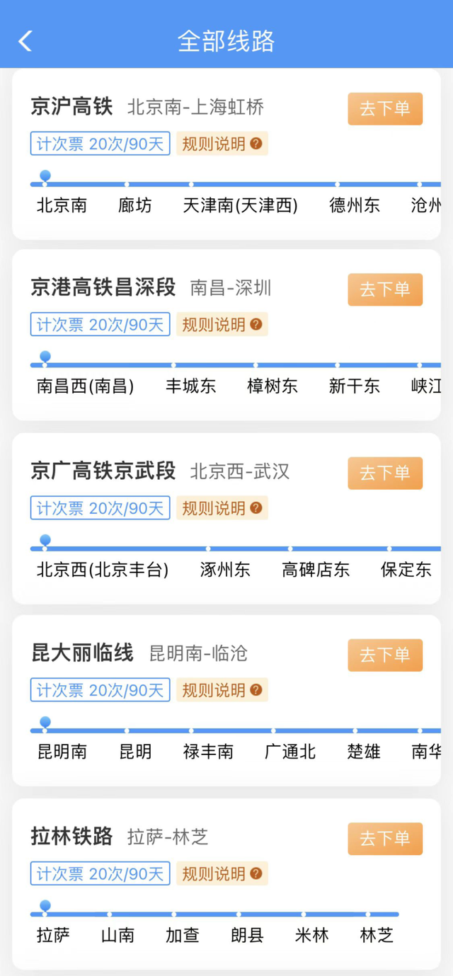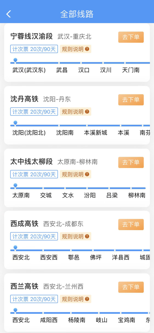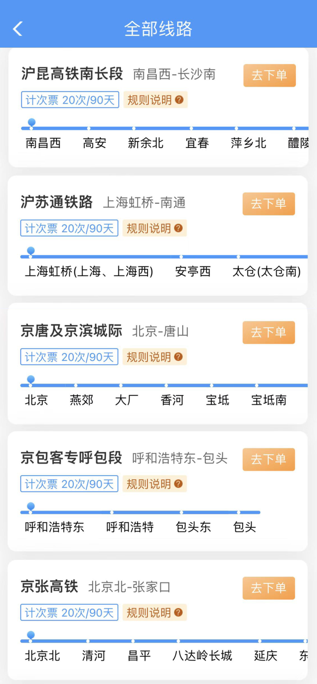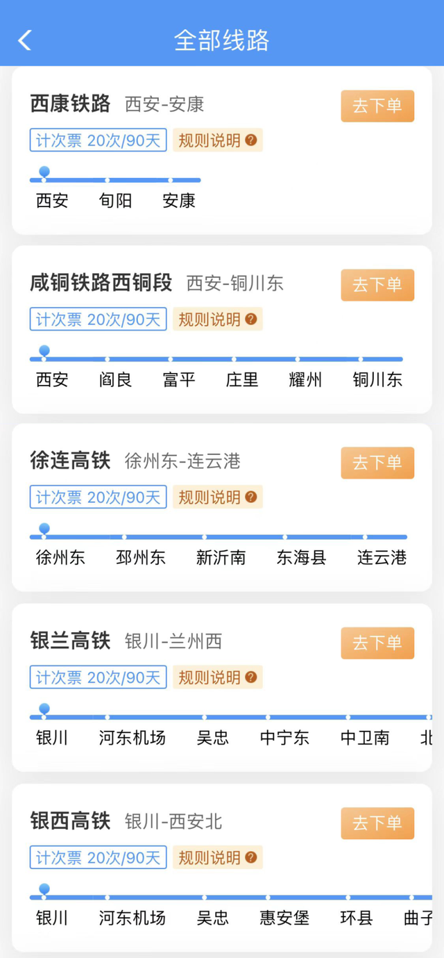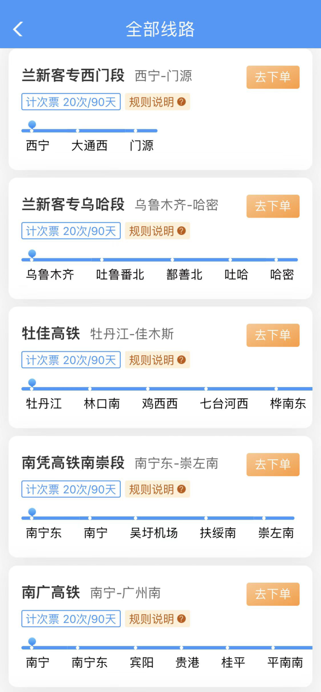 20次每90天计次票:可在90天有效期内,乘坐20次在指定线路开行的、购买产品时指定发到站和指定席别的列车。