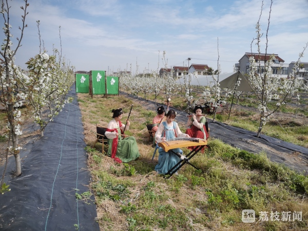 梨花节现场好不热闹,抚琴、吹笛、弹琵琶……几名身着汉服的演员坐在梨树下演奏;三五成群的小学生席地而坐,在画纸上勾勒梨花清新淡雅的轮廓;摄影爱好者们穿梭梨树间,用镜头捕捉梨花在春光中明媚的模样。“这是我们画下春天的美好时刻。”三和小学学生蔡紫涵说。