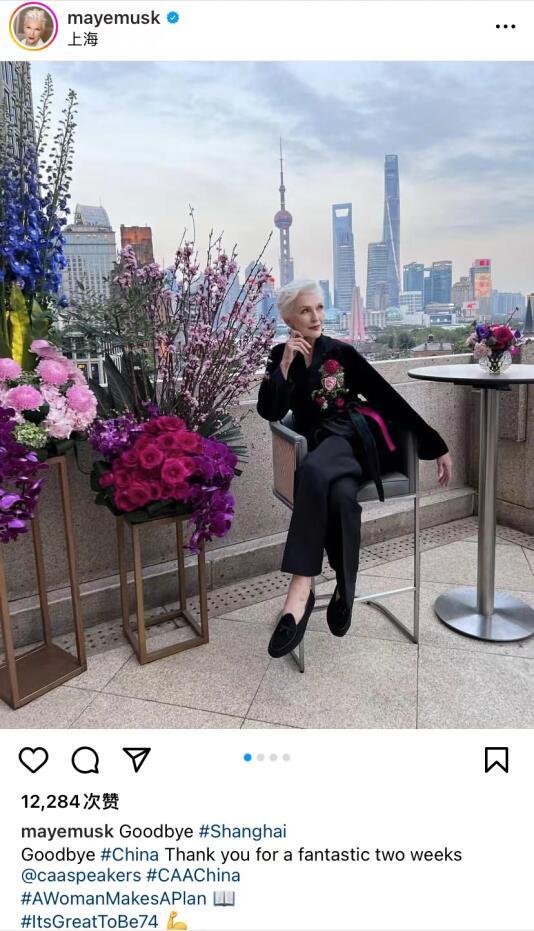 报道称,梅耶·马斯克当地时间2日在社交平台Instagram上发帖称,“再见上海,再见中国,谢谢你让我度过了美妙的两周”。《联合早报》称,她此次前往中国是为了宣传新书以及旅行。