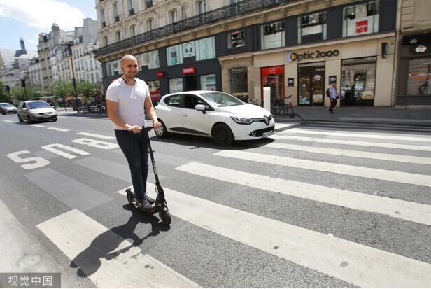 当地时间2019年6月17日,法国巴黎,人们骑电动滑板车出行。人民视觉 资料图