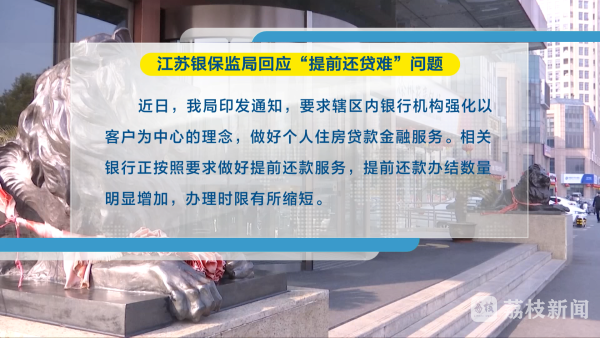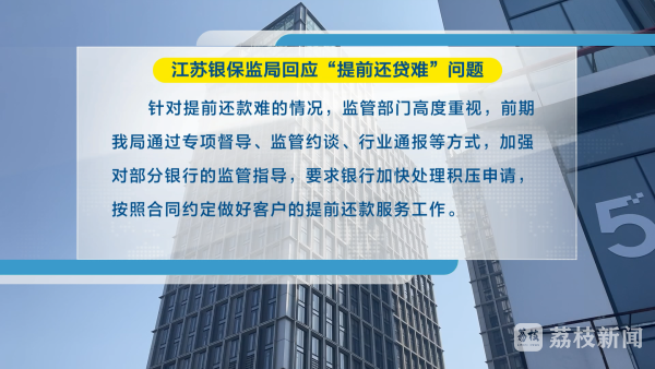针对这些问题,江苏银保监局表示,他们高度关注,前期还通过专项督导、监管约谈、行业通报等方式,加强对部分银行的监管指导,要求银行加快处理积压申请,按照合同约定做好客户的提前还款服务工作。