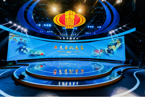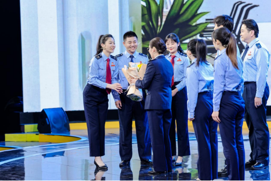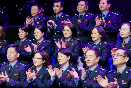 台上,灯光璀璨;台下,气氛热烈。一枚枚税徽在聚光灯下熠熠发光,一抹抹税务蓝在舞台中央绽放光彩。