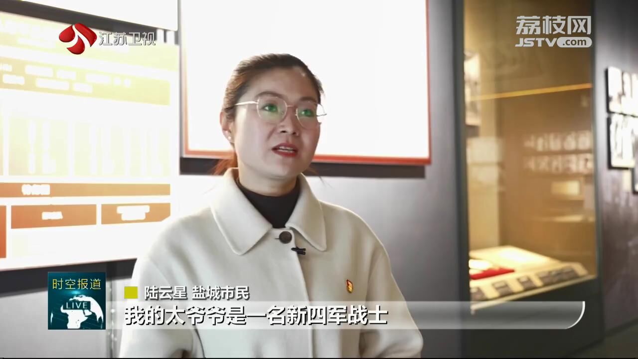 盐城市民陆云星说:“我的太爷爷是一名新四军战士,是一位烈士。来参观也是一种缅怀,我也会传承这样的红色精神,教育好下一代。”