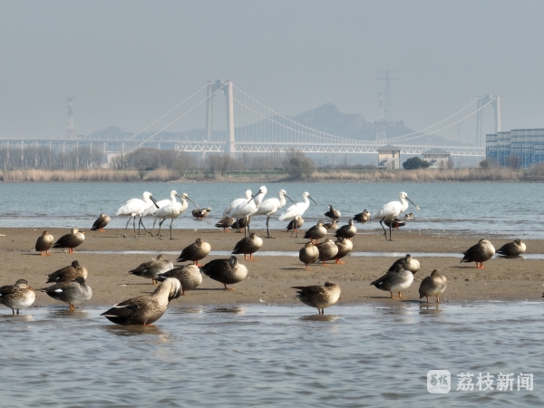 除了“鸟中国宝”,生活在江边的高桥居民还在附近发现了白琵鹭。白琵鹭因嘴端上下扁平,与中国传统乐器中的琵琶极为相似而得名,每年春季从南方越冬地迁到北方繁殖地,秋季南迁,是国家二级保护动物。
