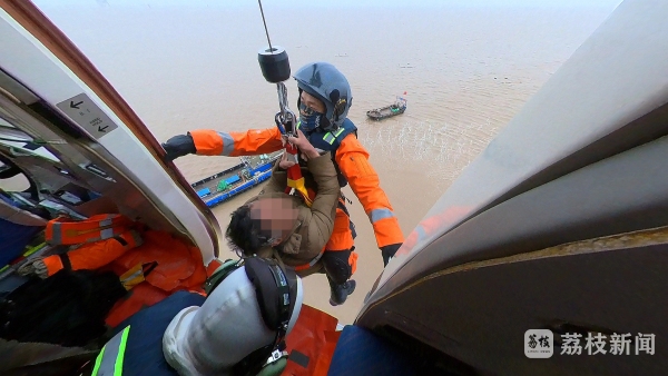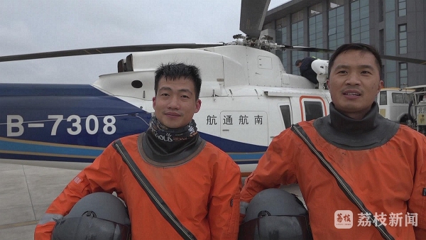 南航通用航空股份有限公司驻盐城B-7308急救机组绞车手铁梦告诉记者,下午2点15分左右,急救机组接到盐城海事局指派的紧急救援任务,有两艘渔船在返港避风途经东台外海海域途中,渔船的机器突然发生故障,导致渔船失去动力,而此时的海上是风大浪急,公务救援船艇无法靠近遇险船舶。