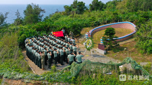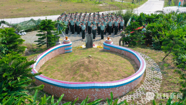 崖海边上红星亮,从此赤潮卷南天。面朝英烈纪念碑,官兵们在广场上整齐列队,集体默哀,敬献花篮,面对鲜红的军旗,重温入伍初心,许下郑重誓言。