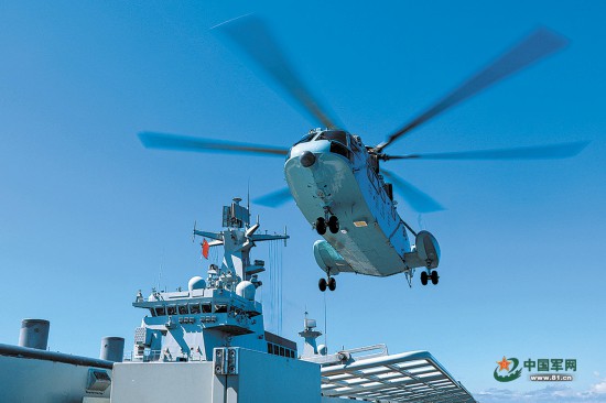 舰载直升机升空。