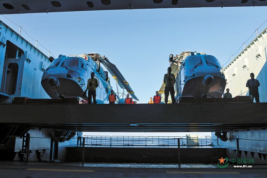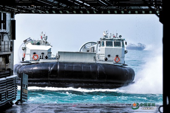 气垫艇进出坞舱训练。