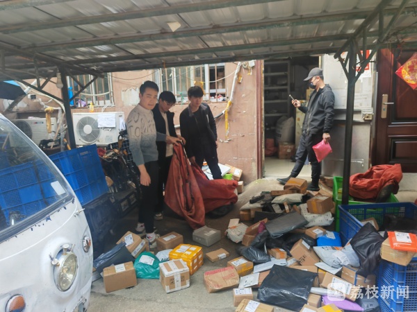除了违规圈占车棚外,在前期城市治理公众委员,城市治理志愿者的走访摸排中发现,小区内还有一处快递收寄点违规占用车棚,分拣快递,停放运营车辆。7日上午,记者在现场看到,不少分拣员正在车棚下分拣快递,而小区居民的车辆只能停放在远处。