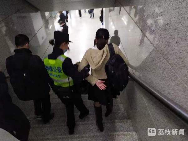 3月24日下午,一名女乘客从地铁十号线某站进站,一路上女子都一直在低头看手机,结果在下楼梯时踏空摔倒。当站执勤辅警听闻异响和呼叫后连忙奔赴现场,将女子搀扶起来。