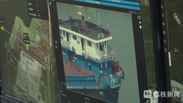 正在操控无人机的南京海事局通航管理处副处长郭逊卓介绍:“无人机从机库里面自动出库,我们一般的预定高度在100米左右。一般的无人机只能按照预定的航线执行任务,不能进行人为干预,但是我们现在这台无人机就可以用键盘对它进行手动控制。像现在画面上看到的就是龙潭海事处辖区的乌鱼洲下锚地,只需要双击你需要看的这条船,画面中心点就会调整到这条船。我们切换到变焦镜头,就可以对镜头进行放大缩小的处理。”
