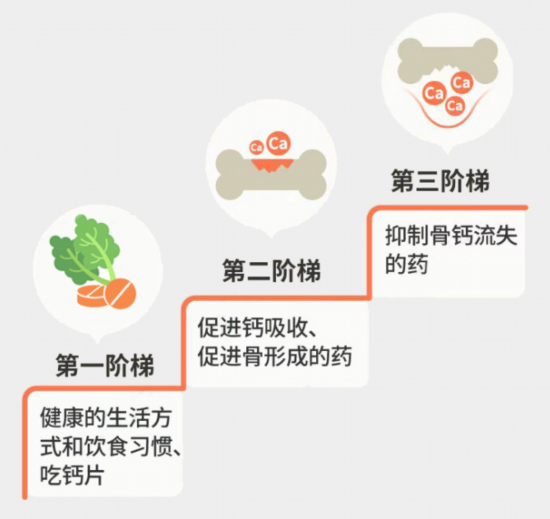 这就要进入治疗的第二步和第三步:通过一些药物来帮助钙质吸收,减缓骨量流失。