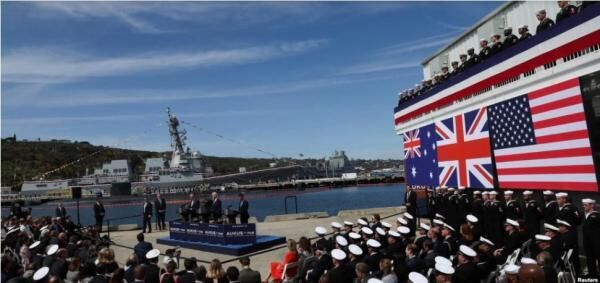 美英澳在加州圣迭戈的海军基地举行的仪式上宣布三国核潜艇合作。资料图