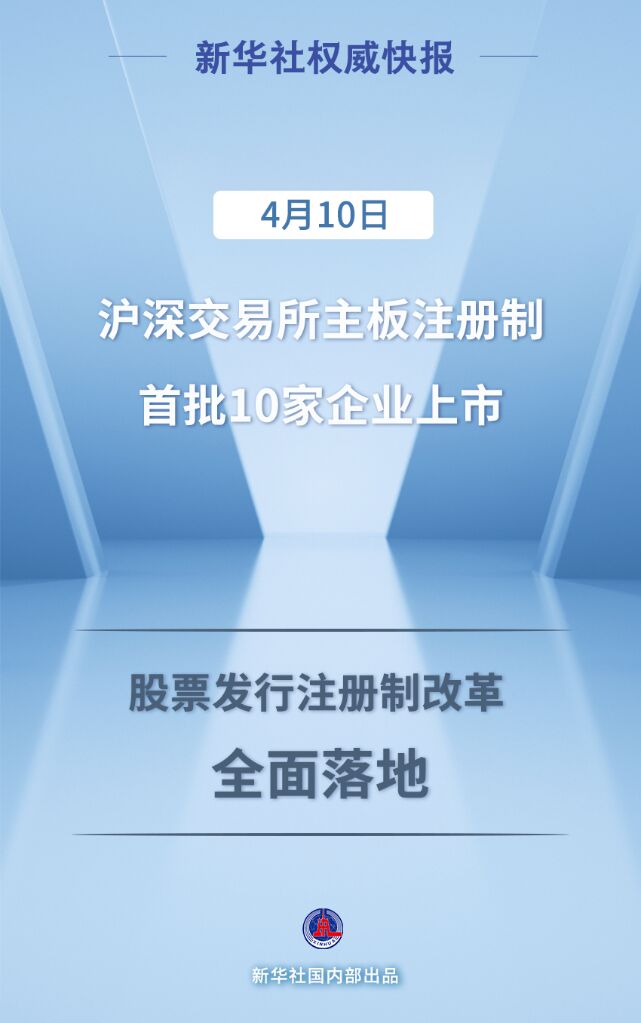 4月10日,沪深交易所主板注册制首批10家企业上市。