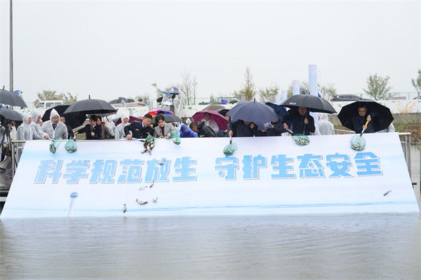 活动现场还为滆湖第三个水生生物定点放流平台“江苏省滆湖水生生物放流平台”揭牌。据悉,今年滆湖将陆续放流鲢、鳙、翘嘴鲌、黄颡等鱼苗2300多万尾。