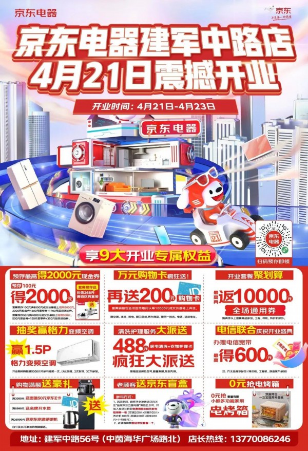 4月21日,来京东电器(建军中路店)解锁开业9大专属权益吧!