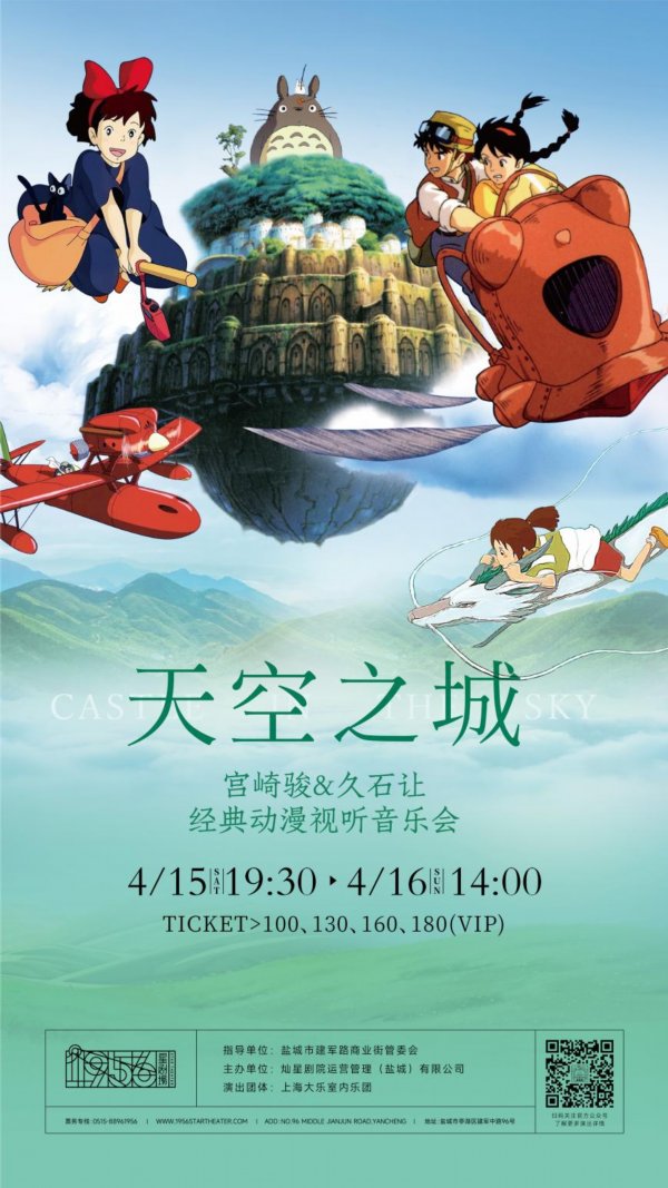 经典动漫作品视听音乐会《天空之城》带着充满天真童趣的《龙猫》、音乐色彩斑斓又不失民族特色的《千与千寻》、糅合了美国乡村音乐与民谣风格的《魔女宅急便》、以及融合探戈元素的《天空之城》等作品将带着我们,乘着娜乌西卡的飞行器穿越过风之谷,徜徉在萤光闪烁的山林中,再搭乘安静的旧式火车滑过寂静水面,奔向奇妙的神隐之乡……