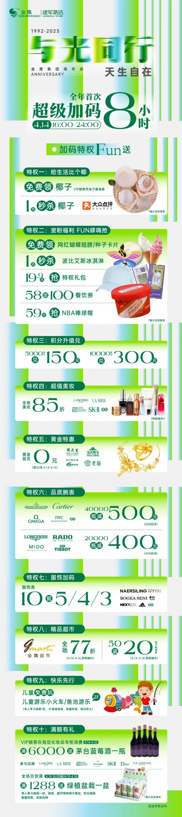 金鹰集团周年庆:4.14日16:00-24:00超级加码8小时!十大特权惊喜放送,这岂不是光看图片就心动啦!