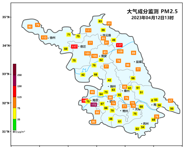 受北方沙尘传输影响,昨天江苏的天空变成了土黄色。今天虽有减弱,但PM2.5、PM10浓度依旧偏高。