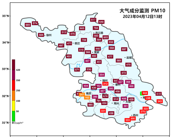 在沙尘天气里,空气也十分干燥。据江苏省气象台最新发布的数据:今天下午2点,全省大部分地区空气湿度不足30%。