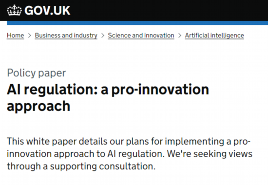 3月29日,英国政府发布《支持创新的人工智能监管方式》。图片来源:英国政府官网
