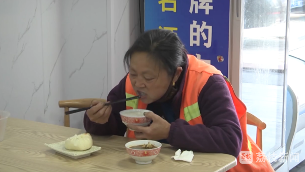 环卫工人刘阿姨通常早餐都是随便对付一口,就匆匆赶往保洁点位。餐馆老板沈海燕看在眼里,每当门口有环卫工人或者小区保安执勤经过,她总是热情地招呼他们进店用餐。“我们每天早上5点多钟就要起来上班了,每天早上来不及吃早饭,我们到爱心餐厅吃一点早餐,吃得很满意,吃在嘴里,暖在心里”,小区保安张先生说。