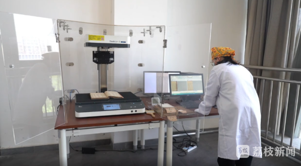 如皋市图书馆古籍室技术人员王秋靓介绍:“今天我们扫描的这本古籍叫《元史地名考》,因为最近江苏省古籍(保护)中心正在收集省级、国家级珍贵古籍重点目录的数据,所以我们今天把它再次拿出来进行重点数据补充扫描。”