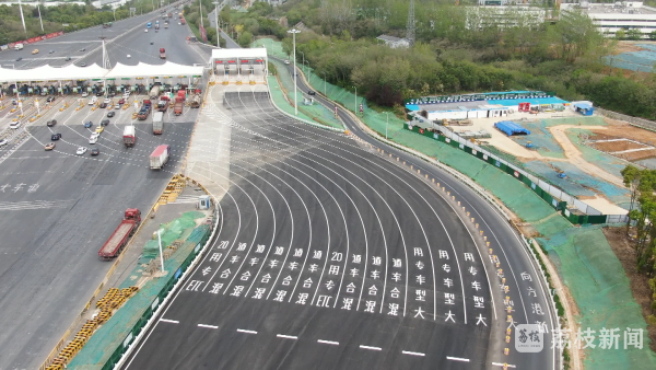 今天(4月13日)上午,记者在南京八卦洲大桥收费站的南广场看到,道路右侧部分路面已经用黄色的护栏和水马隔离开。