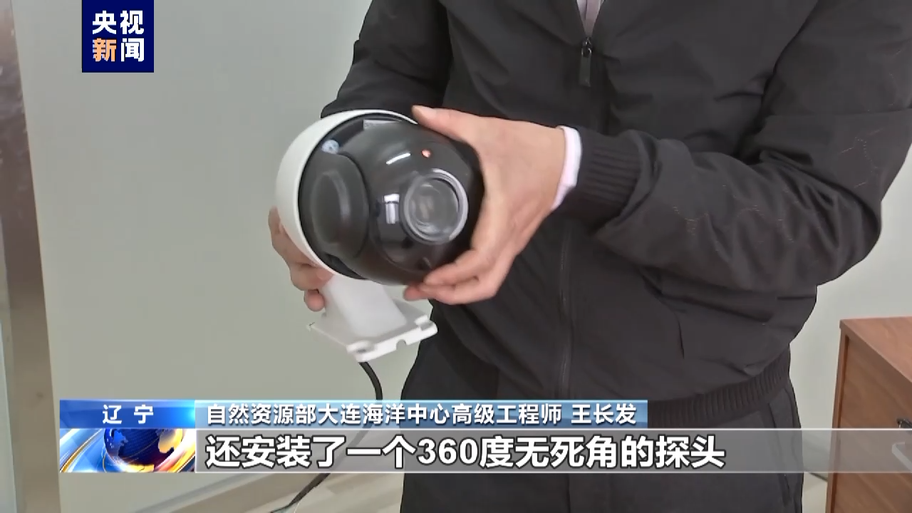 自然资源部大连海洋中心高级工程师 王长发:温盐,温指海温,盐指盐度。除了这个是安装在水面以下的仪器,在陆上还安装了一个360度无死角的探头,海面上发生的细微变化,它都能及时地观察到。包括海平面的变化,甚至可以观察到潮汐的变化。