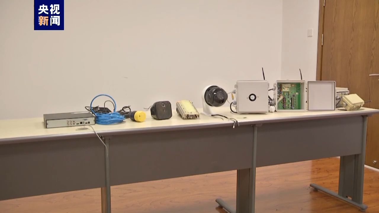 大连市国家安全局干警:这套设备有三组部件,一个是采光,一个是拾音,一个是摄像头。在张先生海参养殖场的一根电线杆上面,这三组部件表面看都很普通,实际上它们都是进行了巧妙的伪装。这个摄像头表面看就和我们大街小巷上面的摄像头基本是一致的,但是经过巧妙的伪装,测距距离在二十五公里以上,而普通的摄像头就是几百米而已,支持360度旋转,特别灵敏。这个拾音盒其实也是经过巧妙的伪装,表面看就是个喇叭,飞机从起飞到路过所有的过程,由拾音盒拾音,然后把声音传导给摄像头,摄像头及时进行捕捉。其实养海参根本不需要这套设备,装这套设备就是要把我们空军所有重要演训画面,收集进来,传输到境外。
