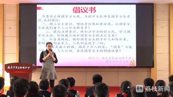 南京市第五初级中学副校长汪勇说:“希望同学们从小树立国家安全意识,将来走上社会,能够自觉维护国家安全。”