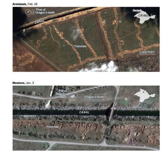 第二个,从战术层面上来讲,俄罗斯正在加固克里米亚的防御体系,特别是建起了一个由战壕和防御工事所组成的广泛的防御网络,乌军很有可能进入第一道封锁线就进不去了,因为后面有密密麻麻的防御网络,乌克兰的反攻恐怕仅仅是纸上谈兵。