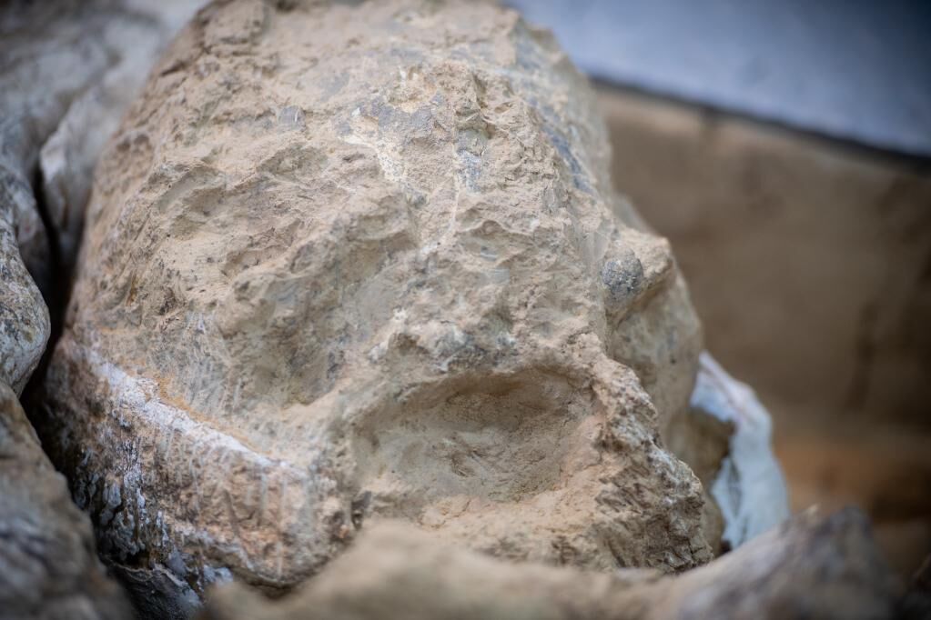2022年12月3日拍摄的“郧县人”3号头骨化石。新华社记者伍志尊 摄
