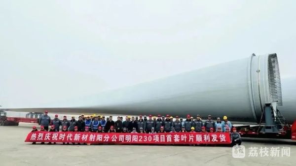 2023年3月,首套111.5米级海上风电叶片在射阳工厂顺利发货,叶片将运往国电投山东半岛U场址一期,是时代新材目前批产的最长叶型。