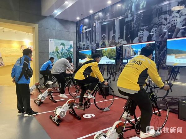 在水墨大埝自行车文化体验馆内,骑手们看着自行车从达·芬奇的设想演变成量化生产的家用交通工具,听着自行车发烧友溥仪为骑车拆掉故宫门槛的趣事,拎着只有四五斤的碳纤维公路车,体验环法公路赛的实况……骑手小哥表示,平时自己都是骑电动自行车配送外卖,要是在配送单不多的情况下,骑自行车送单也挺好玩,看看城市风景,还能锻炼身体。