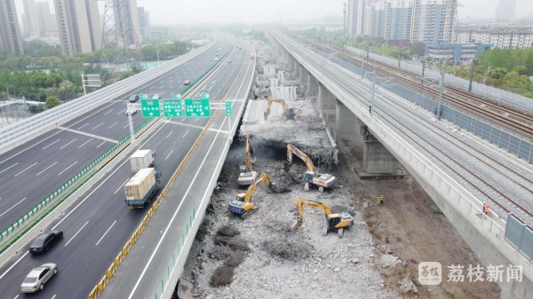 项目现场负责人介绍,长深高速跨万安西路大桥分为左右两幅,其中右幅桥梁紧邻沪宁沿江高速铁路,不满足铁路安全红线距离要求,为确保沪宁沿江高速铁路建设及运营期间安全,必须进行拆除。
