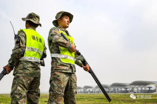 ▲警卫兵时刻观察机场动态。