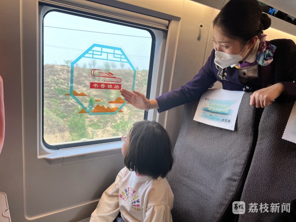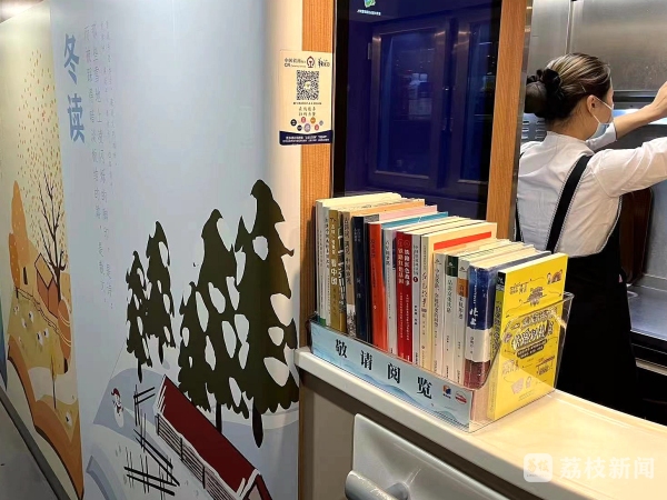 此外,餐车上设置有读书角,摆放优秀图书供旅客阅览,同时为了弘扬中华优秀传统文化,列车上还安排身穿汉服的工作人员与旅客开展阅读互动,参与互动的旅客可以获赠一本图书。