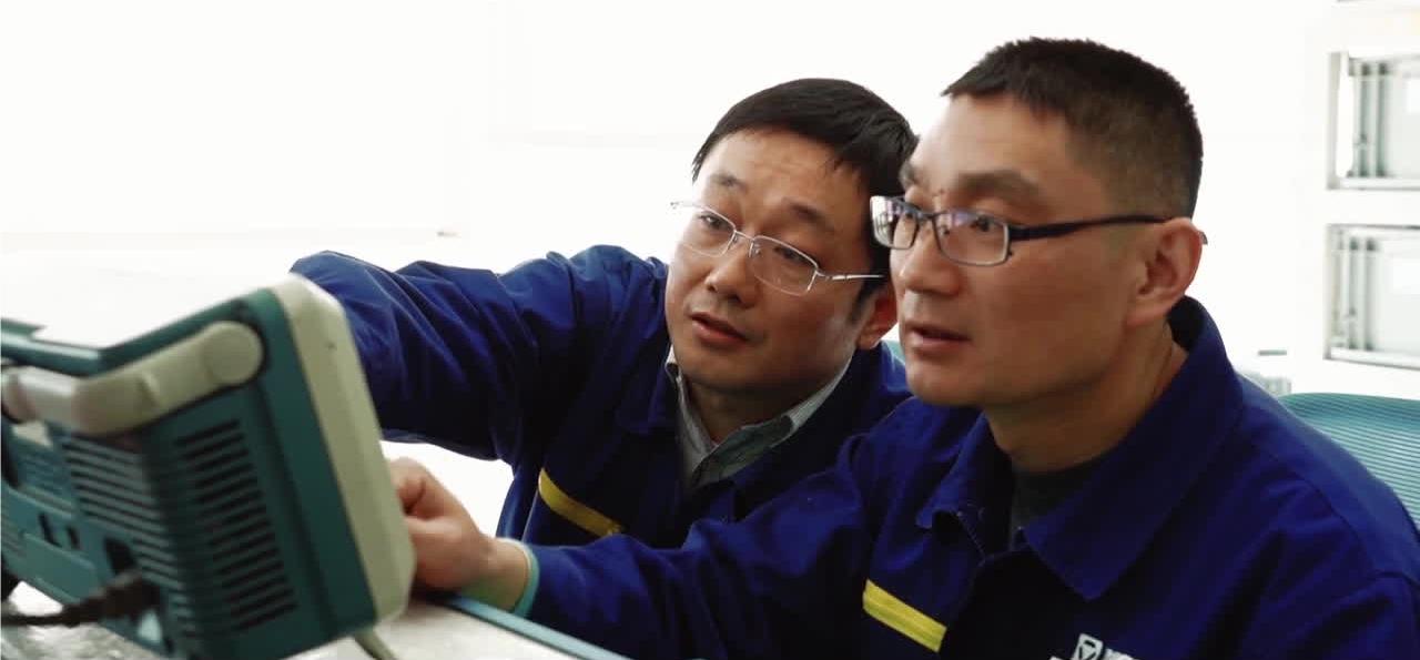 经过一个多小时的试验,产品设计师柴君飞和宋文生来到了硬件开发实验室,通过自主研发的控制器模拟信号源进行整车数据的仿真,以此检测控制器的控制精度和速度等性能。