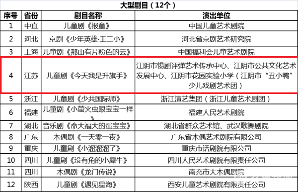 好消息!江阴儿童剧《今天我是升旗手》入围第九届全国优秀儿童戏剧展演。