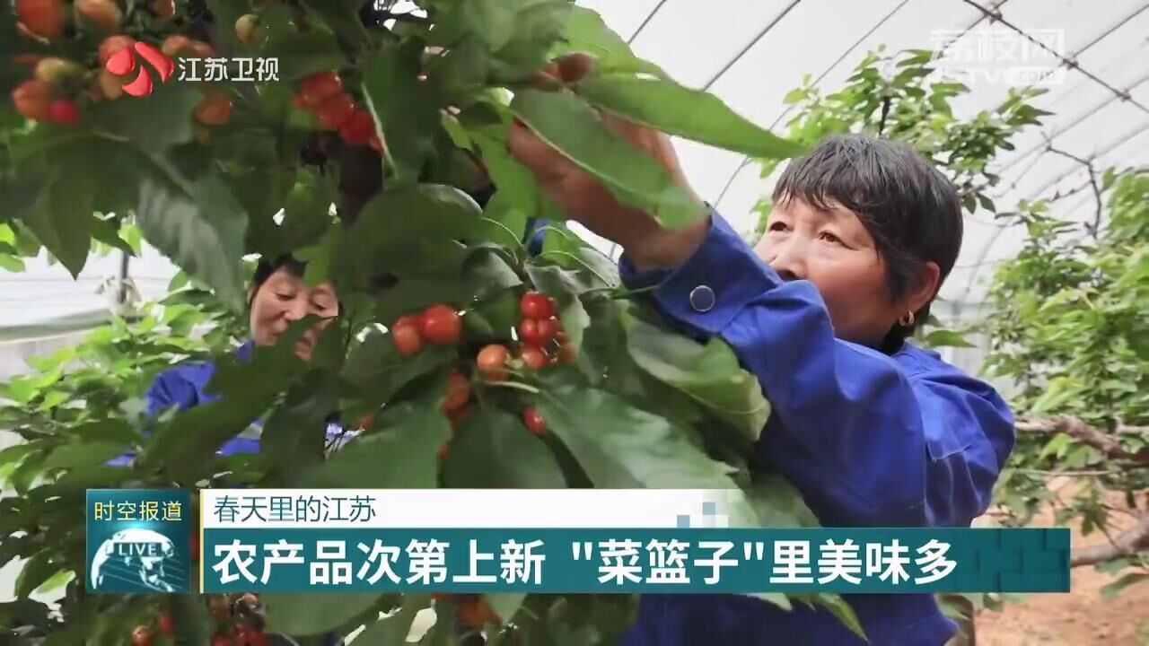 谷雨时节,各种地产果蔬新鲜上市,让市民们的菜篮子更加多彩。在“大蒜之乡”盐城市大丰区,7.8万亩鲜嫩青绿的蒜苔进入收获期,由于前期采用增施有机肥、调整播种时间等有效措施,提升了蒜苔品质,今年亩均收入可达6000多元。红灿灿的地产樱桃甜蜜开摘,在连云港市赣榆区樱桃种植基地,150亩大樱桃个大、肉多,远销上海、南京等大中型城市。苏州这片樱桃园里,露天种植四月樱挂满枝头,果农表示,最近的气温适合樱桃生长,今年亩产会达到三四千斤。目前五一期间的采摘游预约,已经达到80%。