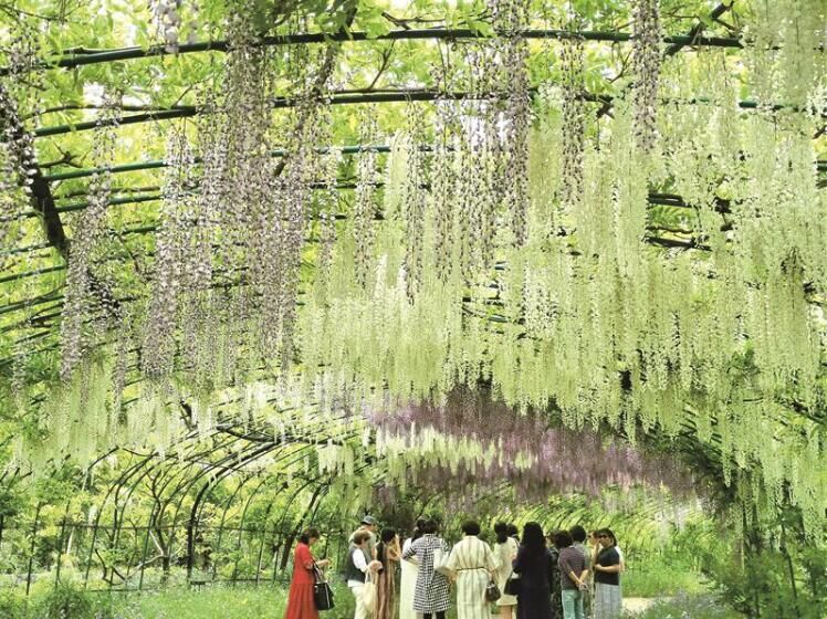 “不少紫藤品种都是夫妇二人从国外直接购买带回来栽种的。”园内员工告诉记者,15年前,紫藤园主人前往日本以及欧洲探访朋友,被绕墙而上、花枝匝地的紫藤所惊艳,便立下搜罗世界紫藤品种于一园、建设紫藤种业“基因库”的志愿。