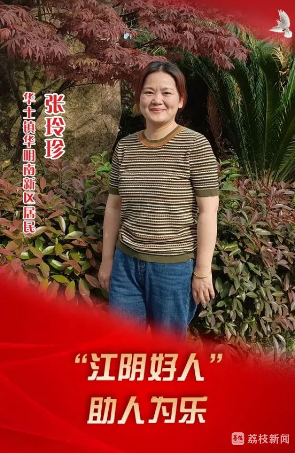张玲珍,女,1971年生,华士镇华明南新区居民。2023年1月25日下午,一位70多岁的老大爷在华士镇穿山路步行时突然摔倒,而此时正好驾车经过该路段的张玲珍和丈夫李永彪发现了这一情况,立刻停车下去查看。由于天气寒冷,老人躺在地上有些发抖,额头还在流血,张玲珍立即把他扶了起来,并询问他身体情况和家人信息。还好老人身体并无大碍,意识也比较清醒,准确地说出了家人的电话。随后,张玲珍联系了老人的家人,并把老人送往医院做进一步检查。
